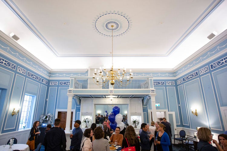 Staff and faculty at the retirement party for U of T's Paul Fraumeni get a sneak peak at the renovated Wedgwood ballroom (all photos by Nick Iwanyshyn)