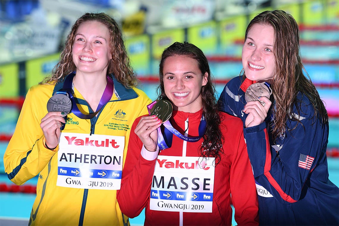 Kylie Masse wins bronze in the women's 100-metre backstroke at the Rio 2016 Olympic Games (photo by Ian MacNicol/Getty Images)