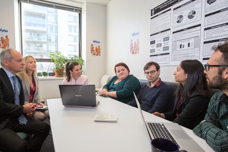 Earlier in the morning, Duncan met with Fallon, Craig and students to discuss their research in person. One of the students working with Craig, PhD candidate Lauren McInroy, also used to take classes from Duncan when she taught at U of T.