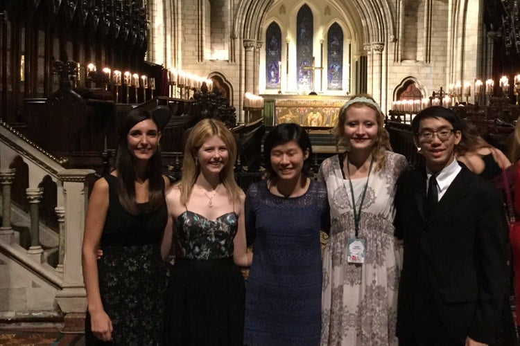 Anneliese Mills, a history and anthropology student (second from left), says her favourite part of the trip to Dublin was the black tie gala dinner at St. Patrick's Cathedral (photo courtesy of Anneliese Mills)