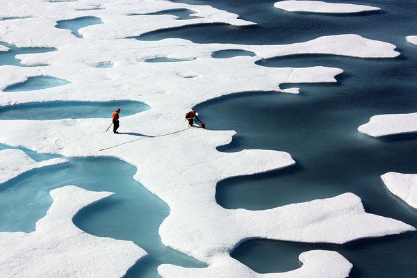 Climate change scientists measure Arctic sea ice (photo by NASA via flickr)