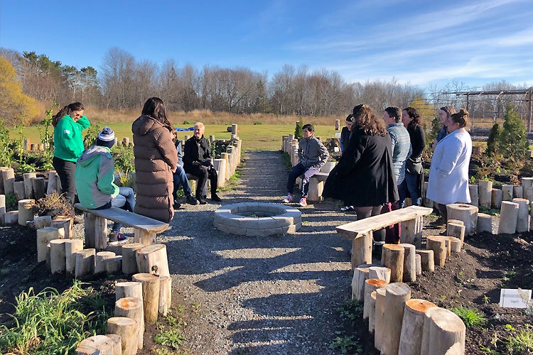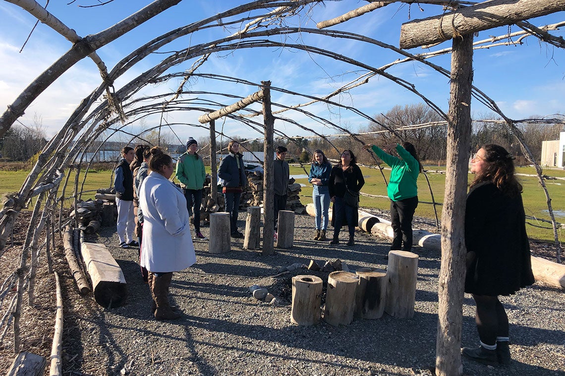 Outdoor learning at the Shingwauk Kinoomaage Gamig teaching lodge (photo by Reid Locklin)