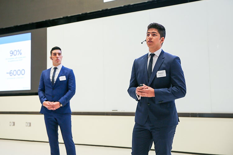 Esteban Arellano (right) and Juan Egas of Brainloop deliver a presentation at the 2019 Hatchery Demo Day (photo by Liz Do)