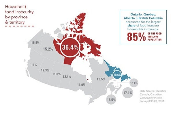 - Nearly one in eight Canadian households experienced food insecurity in 2011.
