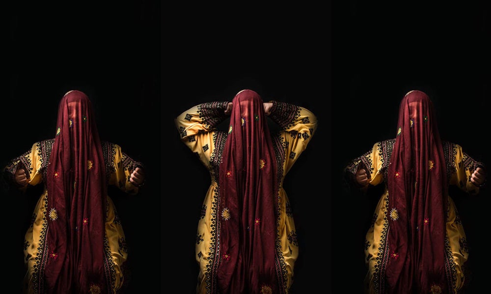 In Kabilay ki Baiti, Magsi is dressed in garments hand-stitched by her ancestral people, the Magsi clan. Over seven photos, she gradually performs a hand gesture the group uses to show devotional love, called mai sadway jawan in Urdu. It means: "I sacrifice myself for you."