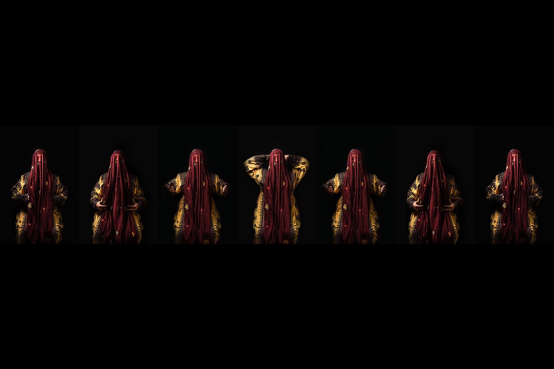 Magsi, who first came to Canada as an international student, believes her story resonated with students in “Curatorial Perspectives II.” In her talk with the class, Magsi revealed that she took the photos for Kabilay ki Baiti herself, in her bedroom, using only a few lights, a black backdrop and a remote trigger for the camera.