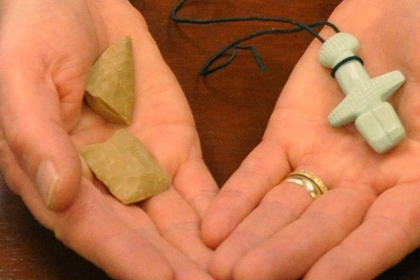 The figurine – a complete female statuette – was found in a collection of igneous stone objects that also included two flat stone tools, one with extensive red ochre residue. The presence of tools provides further evidence of significant manufacturing activity associated with the production of chipped stone instruments and the processing of ochre. It likely also explains the location of the site, which is adjacent to a chalk bed and large sulphite deposits.