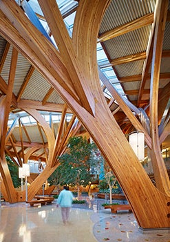 For example, Farrow designed the Carlo Fidani Regional Cancer Centre with tree-like structures that evoke a person reaching to the sky.