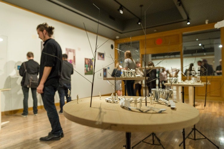 One of the most striking – and interactive – models was created by Brady Peters and Mitchell Akiyama – assistant professors at Daniels who both study the intersection of sound and design.