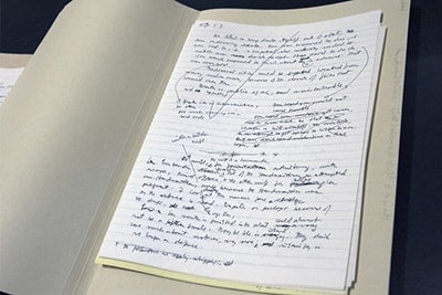 Her first handwritten draft of The Handmaid’s Tale (pictured left) is at the University of Toronto’s Thomas Fisher Rare Book Library, along with book covers of the novel from all over the world. In fact, Atwood has given to the library over 600 boxes worth of archival material from her storied writing career.