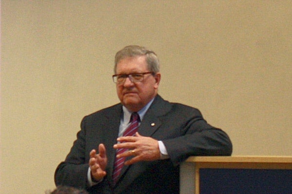 “One of the reasons we’re not as active or engaged as we should be is because I don’t think there’s enough happening in the universities to get young men and women engaged,” he said. “For example, how do you make an R2P [right to protect effort] work? I think there’s a real role for the academy [university].”
