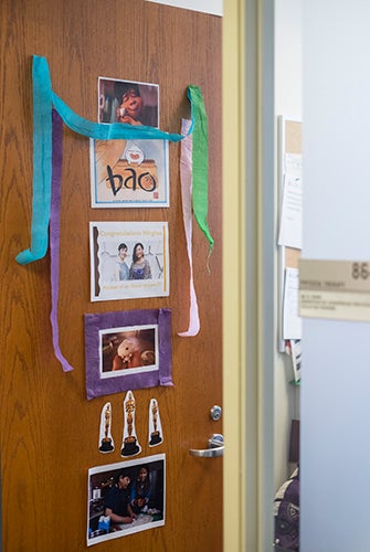 One has only to look around Zhong’s office to see how much Domee means to her. She has no less than four framed pictures of her daughter decorating her desk, spanning the ages of kindergarten to college graduation. There's also a cartoon of a smiling mushroom taped to a cabinet, a birthday present from her daughter.