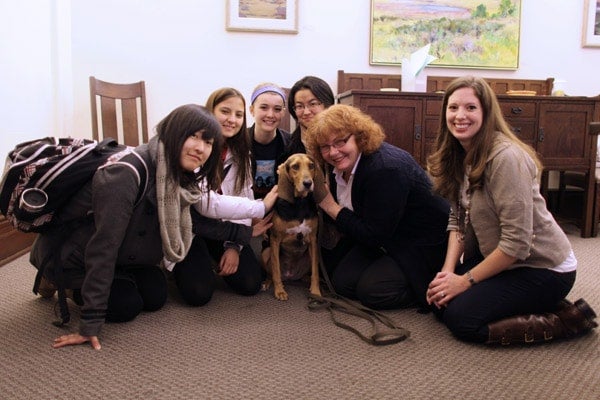 “We thought this was a good time of year to give students a five or 10 minute break, pet a dog, relieve their stress and go back to studying in a better frame of mind,” says Bell.