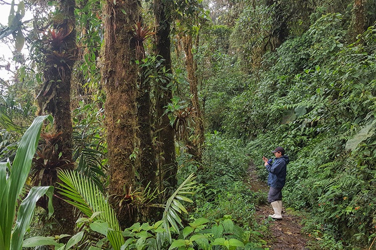 When they weren’t gathering specimens, the students met members of the reclusive Huaorani tribe, some communities of which still resist contact with outsiders. They saw dwarf caiman – a reptile similar to an alligator – and other species on a boat trip down the Tiputini River at night. And, on a separate day trip, they explored an ecosystem few witness: the Andean cloud forest.