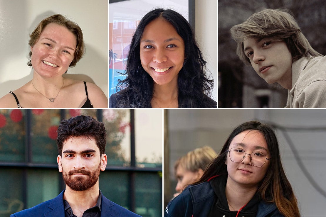 Clockwise from top left: Charlie Olsen, Princess Rogelyn Saladino, Jonathan De Vries, Yunshan Li and Ahsen Bhatti (supplied images)