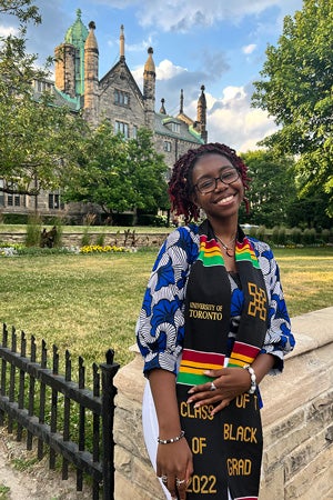 Faromika and her family immigrated to Prince Edward Island from Nigeria in 2011. She began her undergraduate studies at U of T in psychology in 2018 and is now a research assistant and Mitacs Accelerate Fellow in the lab of Brian Levine, a U of T professor of psychology and senior scientist at Baycrest’s Rotman Research Institute. She has been involved with the African Impact Initiative throughout most of her U of T journey – and says it’s contributed immeasurably to her education.