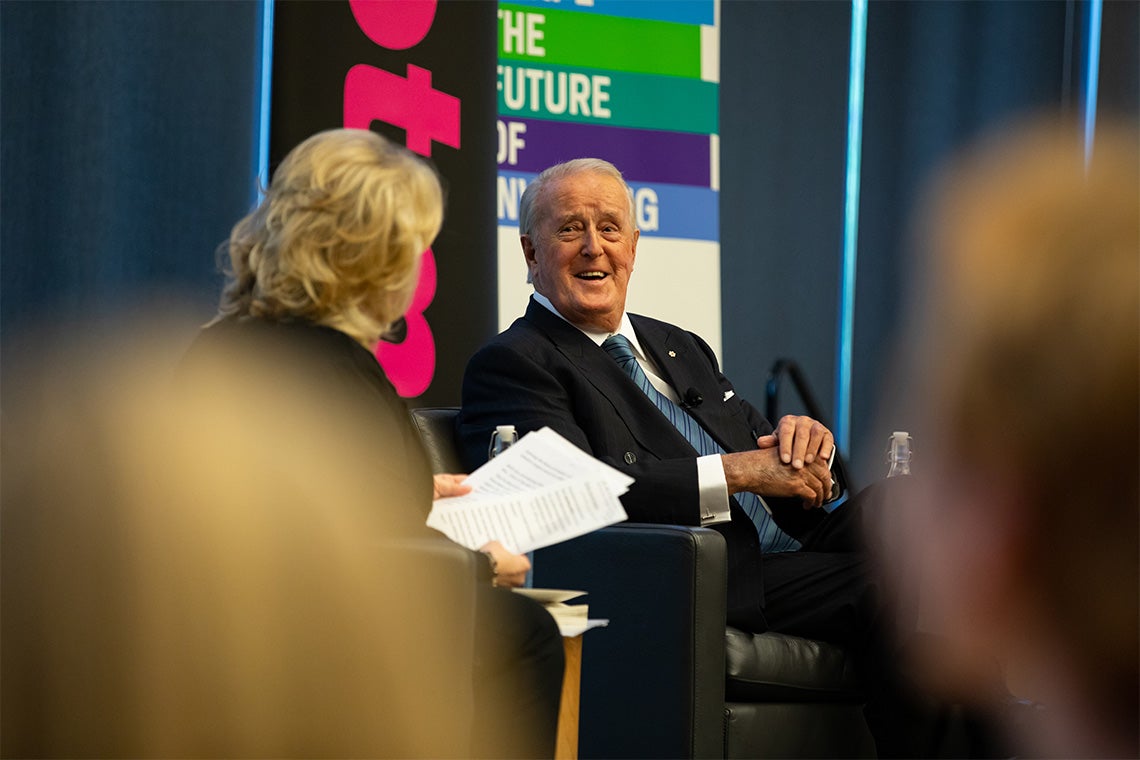 Former Prime Minister Brian Mulroney shared anecdotes about the late Michael Wilson’s time in cabinet during a conversation with Sen. Pamela Wallin at the Rotman School of Management (photo by Johnny Guatto)