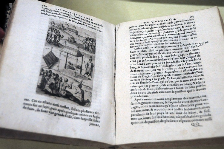 Samuel de Champlain’s book chronicling his voyage to what was then called “New France,” written in 1632.