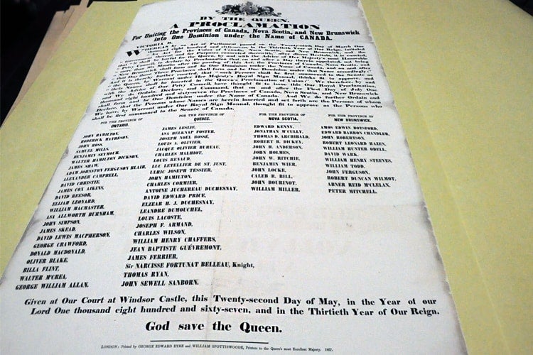 A rare copy of Queen Victoria’s 1867 proclamation recognizing Canada as a nation. “This was put up in Scotland. It was the only one that's known to survive from outside of Canada,” says Carefoote (photo by Romi Levine)