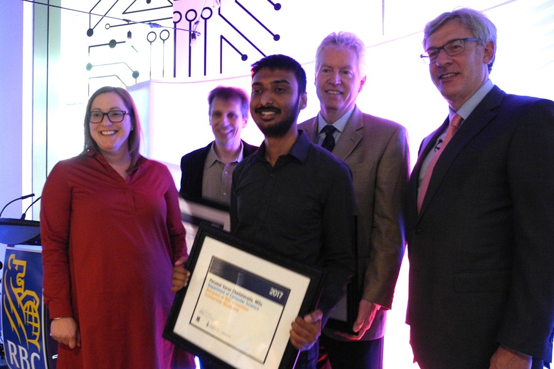 The three RBC research prizes were awarded to Glenn Gulak, Gerald Penn, Cosmin Munteanu and Varun Perumal for their work in fields that range from cybersecurity to designing machine learning user interfaces and developing novel manufacturing materials.