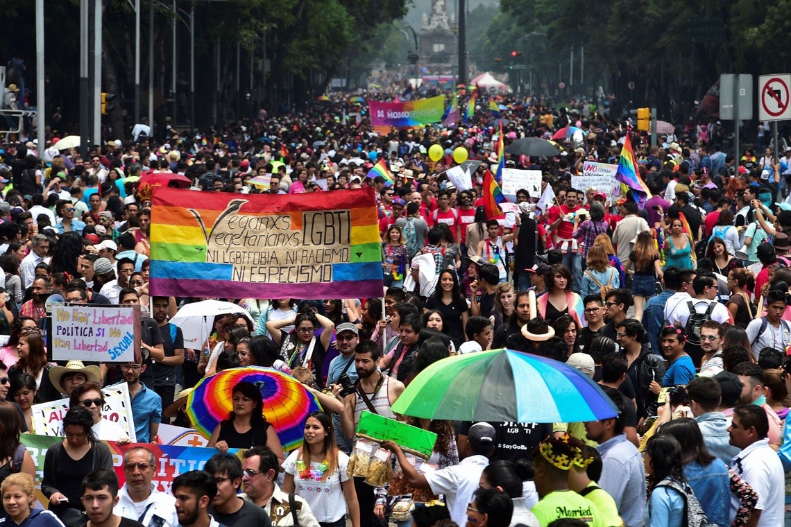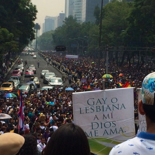 Photo of the Pride Parade in 2016 at Mexico City below by Maia Rotman