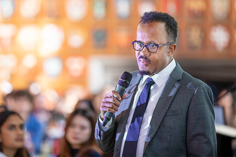 Dean Dexter Voisin speaks to students at Hart House (photo by Nick Iwanyshyn)