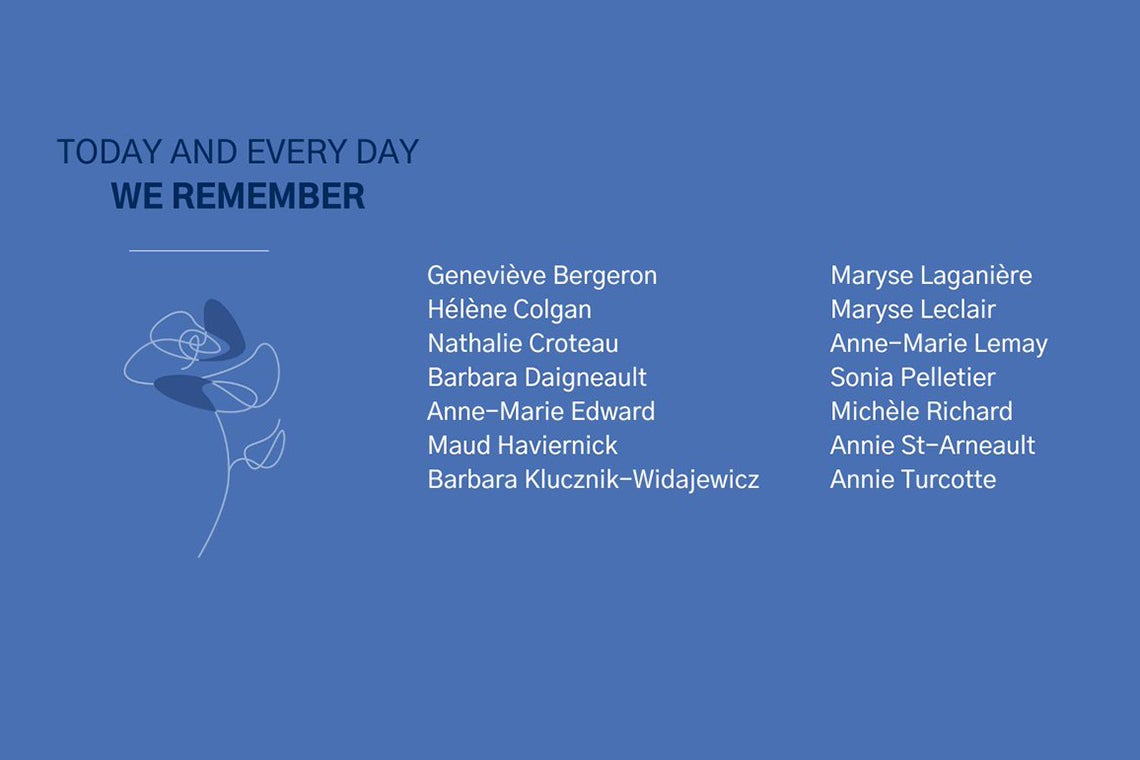 Members of the University of Toronto community gathered virtually on Monday to remember the 14 women killed in the École Polytechnique massacre 32 years ago – and to reflect on how to combat gender inequality and gender-based violence today.