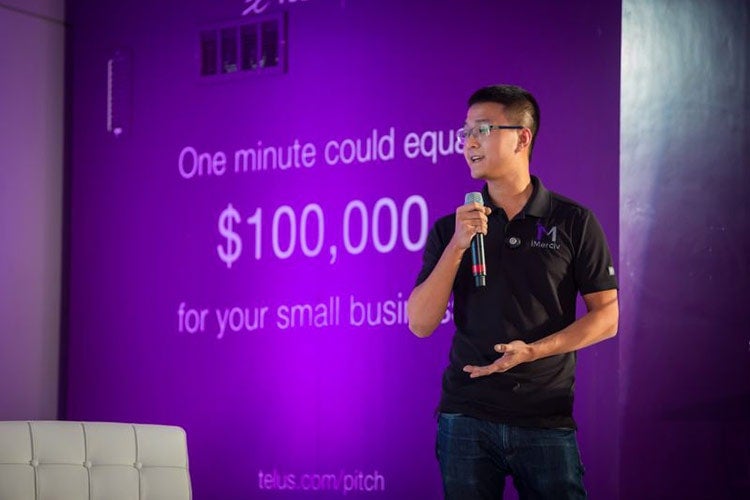Bin Liu, the co-founder and CEO of mobility device startup iMerciv, presents at a recent Telus pitch competition (photo courtesy of Telus)