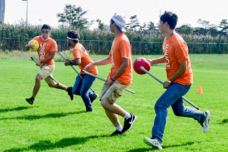 U of T Scarborough students play a game of quidditch (photo by Ken Jones)