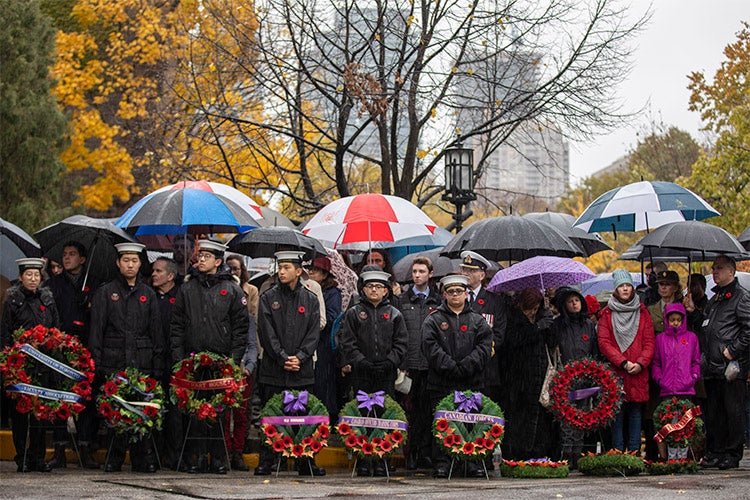 U of T Service of Remembrance at the foot of the Soldiers’ Tower (photo by Nick Iwanyshyn)