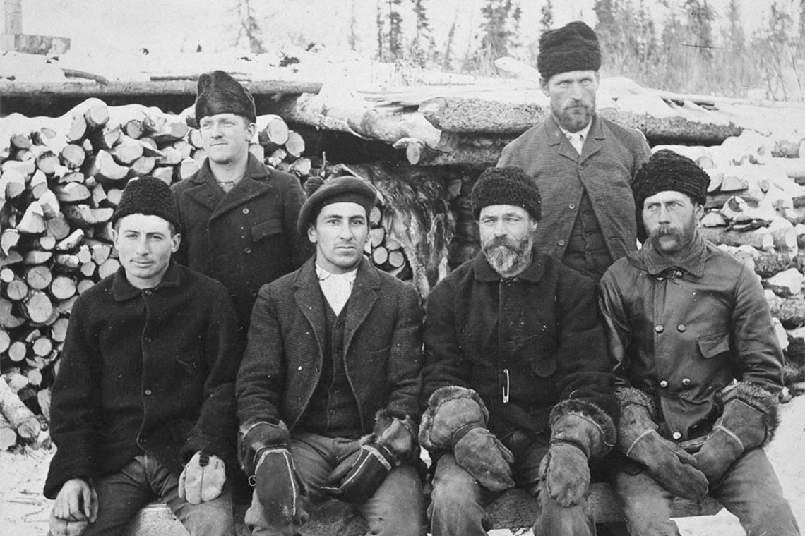 William Ogilvie's party at winter quarters near the Alaska-Canada boundary line, October, 1895 (William Ogilvie/Library and Archives Canada/C-074924)