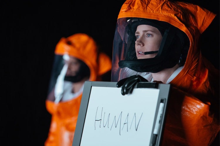 Louise Banks, played by Amy Adams, attempts to communicate with aliens, first by introducing simple nouns (photo by Jan Thijs/Paramount Pictures)