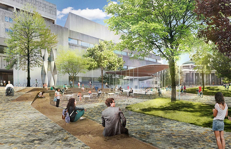The three-year construction project will make Front Campus more pedestrian-friendly, create new greenspaces and improve accessibility (rendering courtesy of KPMB Architects, Michael Van Valkenburgh Associates (MVVA) and Urban Strategies)