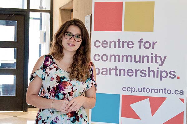 She completed a community-engaged learning placement at the Canadian Catholic Organization for Development and Peace, served on the Equity Studies Student Union executive team and was heavily involved with the Centre for Community Partnerships, first as an alternative reading week participant and later as a project leader and work-study student. (Read more about the Centre for Community Partnerships at U of T)