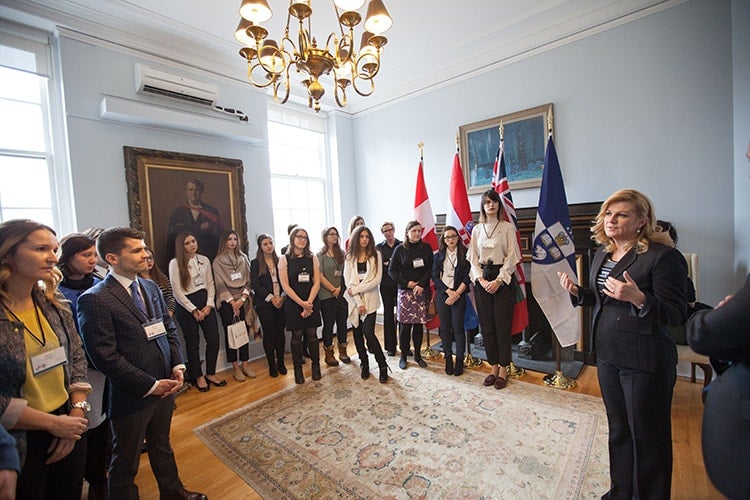 Croatian President Kolinda Grabar-Kitarović speaks to U of T students