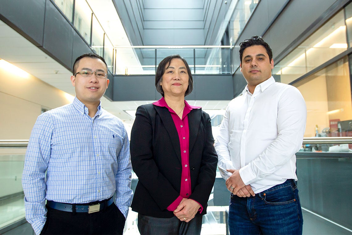 From left to right: Brian Lu, Shirley Wu and Amin GhavamiNejad (photo by Steve Southon)