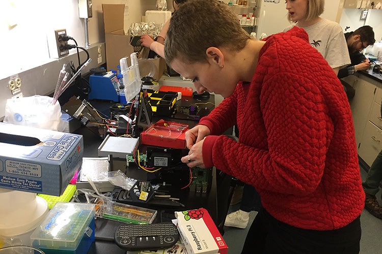 Our lab team put in many late nights to build our four Plum devices in preparation for our trip to Ecuador, where we met up with our international colleagues to deliver their devices and provide training. Plum is primarily made up of inexpensive, off-the-shelf electronics and we have used 3D printing and laser cut fabrication to house these components to create the portable device. Graduate students Yuxiu (Livia) Guo and Seray Cicek are the brains behind the device, which can process over 300 diagnostic samples in parallel.