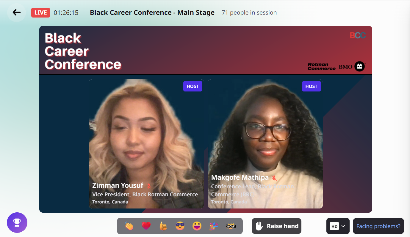 The Black Career Conference, which is organized by Black Rotman Commerce, is very important to me because I see how it fills in the gaps and helps under-represented Black professionals and students connect. I think the conference does excellent work in supporting international students.