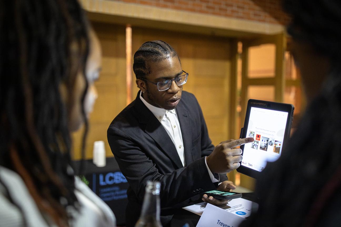 Trevon Nwaozor gives a presentation during the SEE UTM celebration and graduation held on Jan. 18 (photo by Nick Iwanyshyn)