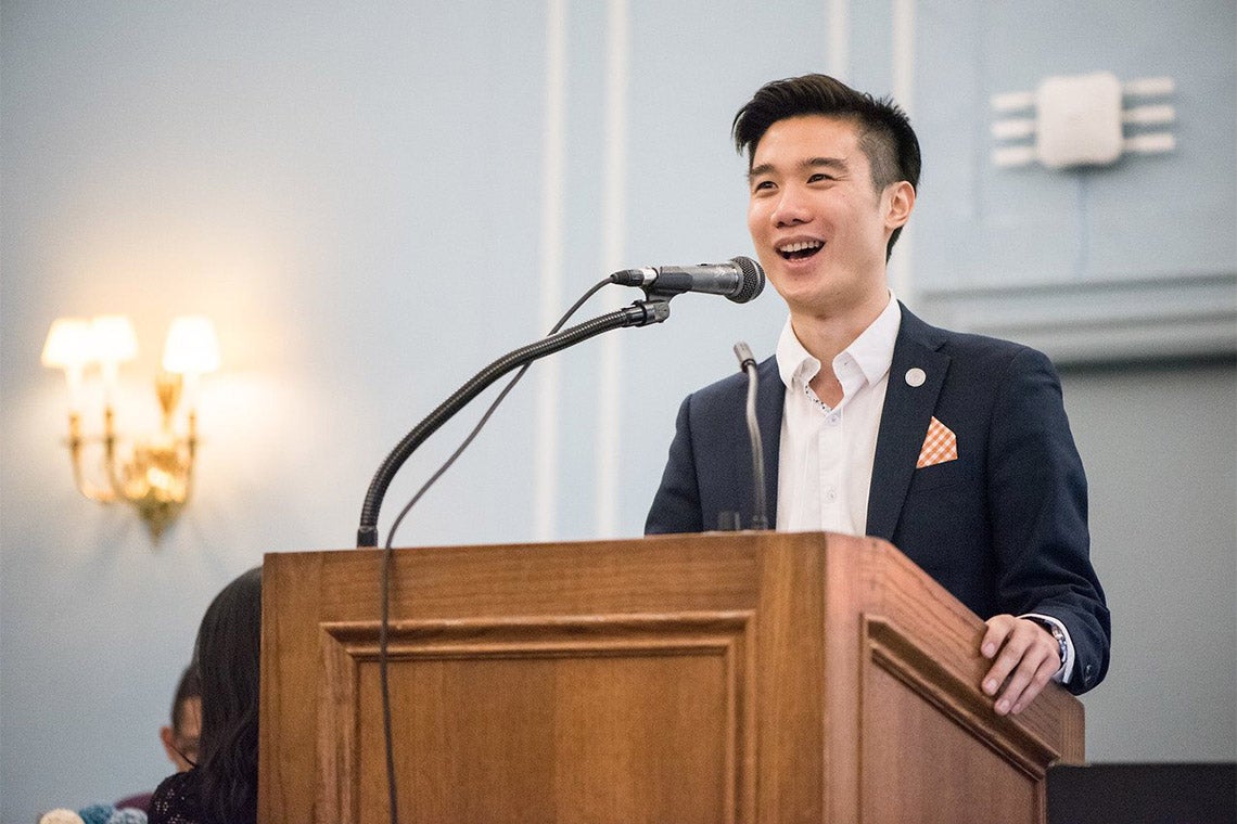 Albert Huynh speaks at the TrackOne 10-year anniversary in 2017 (photo by Alan Yusheng Wu)