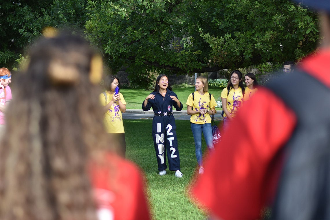 Fourth-year U of T Engineering Selina Tong leads a Frosh Week group in September 2019 (photo courtesy of Selina Tong)