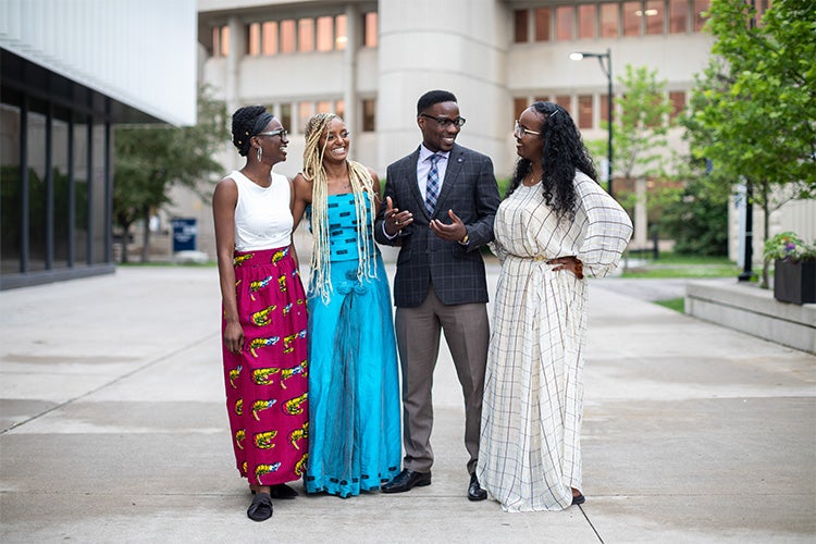 Left to right: Barakat Omotosho, Kalkidan Alemayehu, Henry Ssali and Ayaan Abdulle (photo by Geoffrey Vendeville)