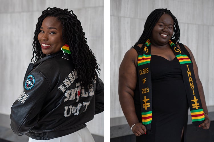Njeri Fraser, left, completed a bachelor's in chemical engineering; Katherina Boyd finished a bachelor's in political science and sociology (photos by Geoffrey Vendeville)