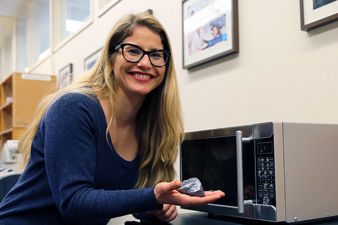“I basically did my PhD by putting rocks in a microwave,” she says. “I drilled a hole in it and put a small reactor vessel inside.”