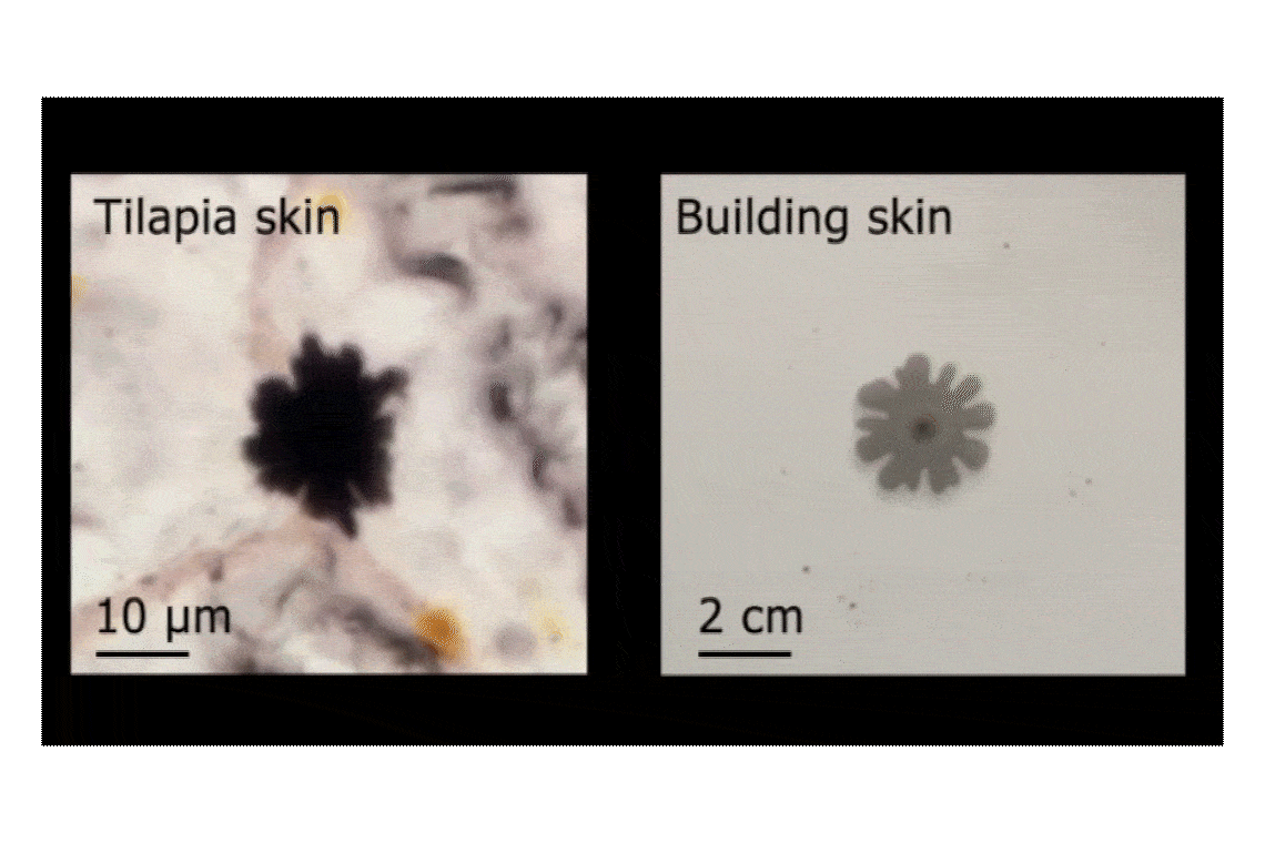 A new, low-cost “optofluidic” system designed by University of Toronto researchers – and inspired by marine life like fish, crab and krill – could help buildings save energy by dynamically changing the appearance of their exteriors.