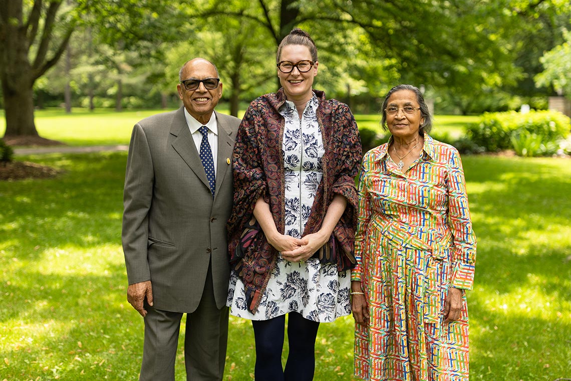 Gyan and Kanchan Jain with U of T Mississauga Vice-President and Principal Alexandra Gillespie (photo by Nick Iwanyshyn)