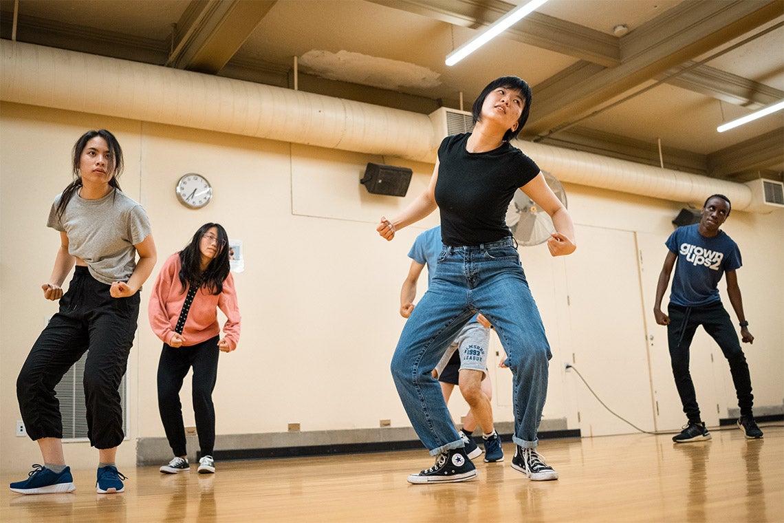 Thy Nguyen (centre), a linguistics major and member of University College and events officer in the K-Pop Dance Crew, teaches choreography at Hart House (photo by Geoffrey Vendeville)
