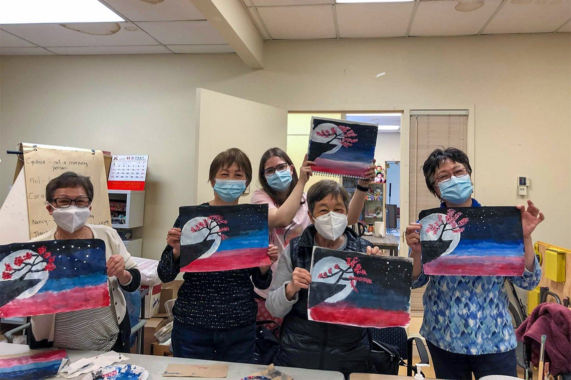 Founded one year ago, the U of T chapter has taught workshops in person at seniors’ homes around the GTA and online. Student volunteers take a Bob Ross approach to teaching, giving step-by-step instructions to paint a picture of a desert, galaxy or still life. At the end of the workshop, participants put their artwork on display in their rooms or as part of a small exhibition.