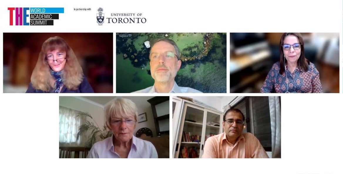 The panel included Dame Nancy Rothwell, president and vice-chancellor of the University of Manchester; Subhasis Chaudhari, director of the Indian Institute of Technology (IIT) Bombay; Denise Pires de Carvalho, rector, Federal University of Rio de Janeiro; and Rufus Black, president and vice-chancellor, University of Tasmania in Australia.