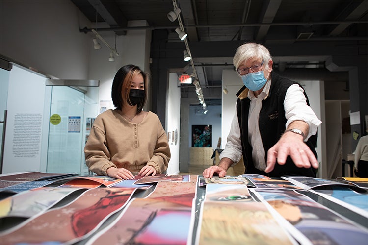 Sherry Chunqing Liu, left, a master of visual studies student at the John H. Daniels Faculty of Architecture, Landscape, and Design, is working with Ellwand, right, to create an installation (photo by Johnny Guatto)